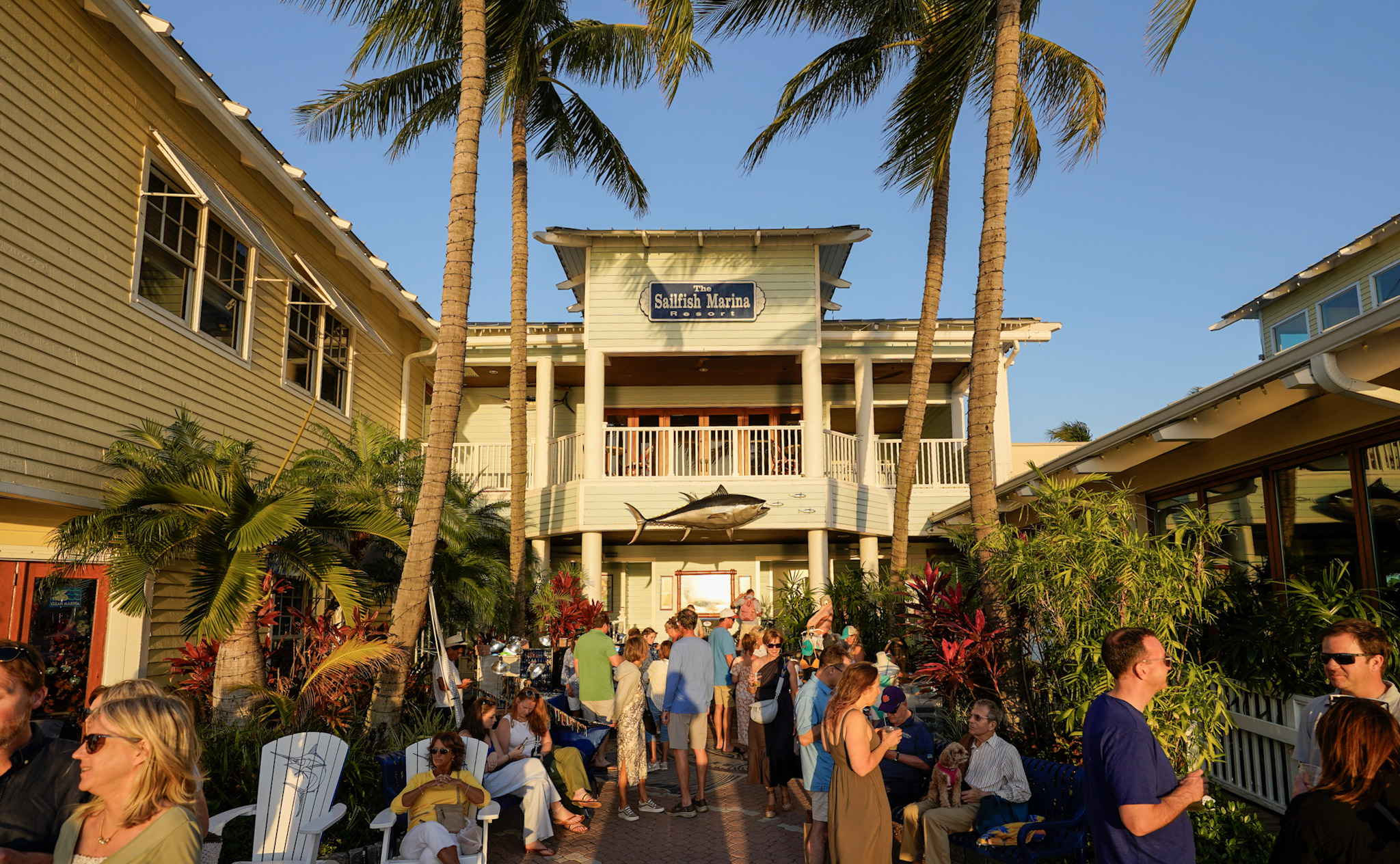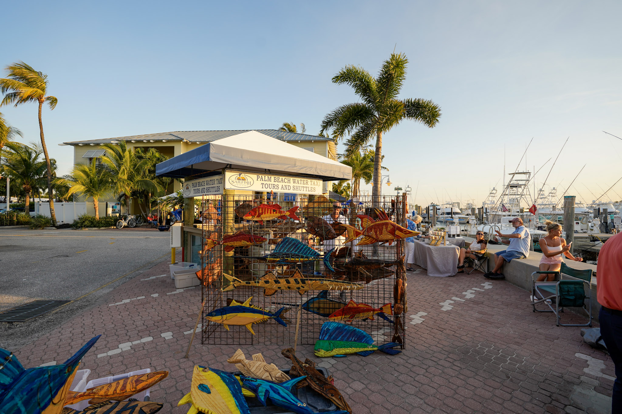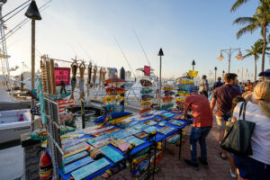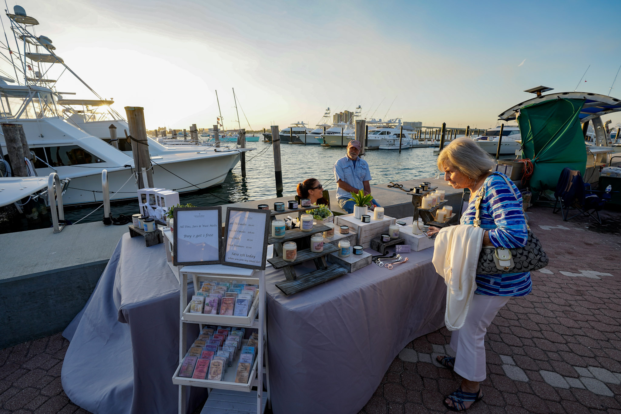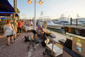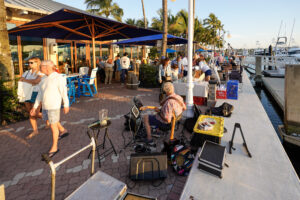The Sailfish Marina Restaurant sets up a stand along the waterfront selling their famous “Grouper Dogs” and Conch Fritters, or if you would prefer something more formal, the Sailfish Restaurant has dining with a beautiful view of the sunset over the water. Every Thursday from 6pm-9pm. $5 Event Parking.