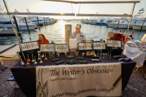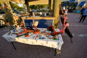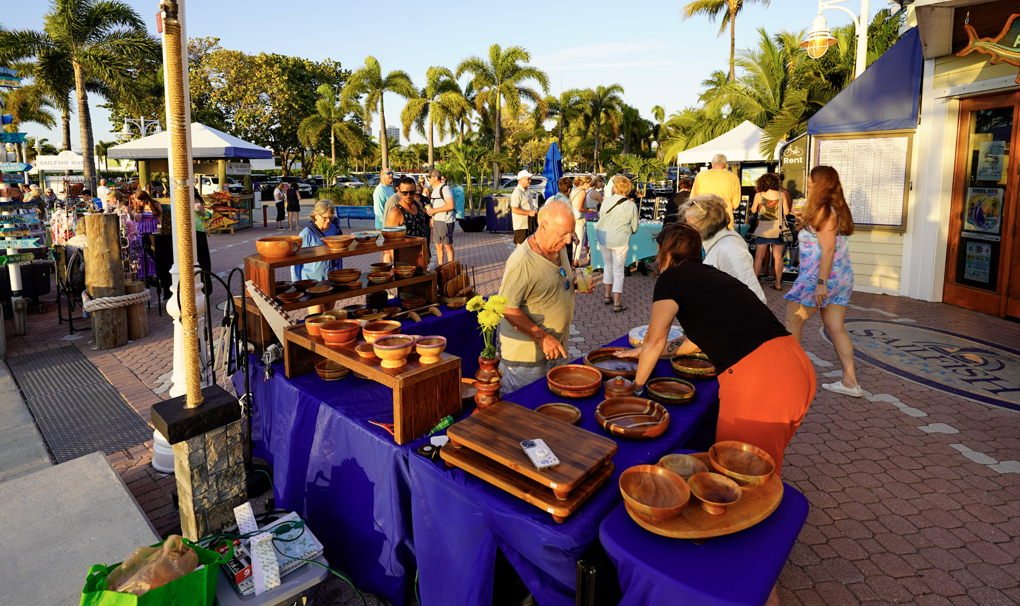 On any Thursday evening you may find wood sculpture, pottery, watercolors, blown glass, gold and silver jewelry and much, much more. There are 35 artists from as far away as Seattle, WA and as close as West Palm Beach, FL.